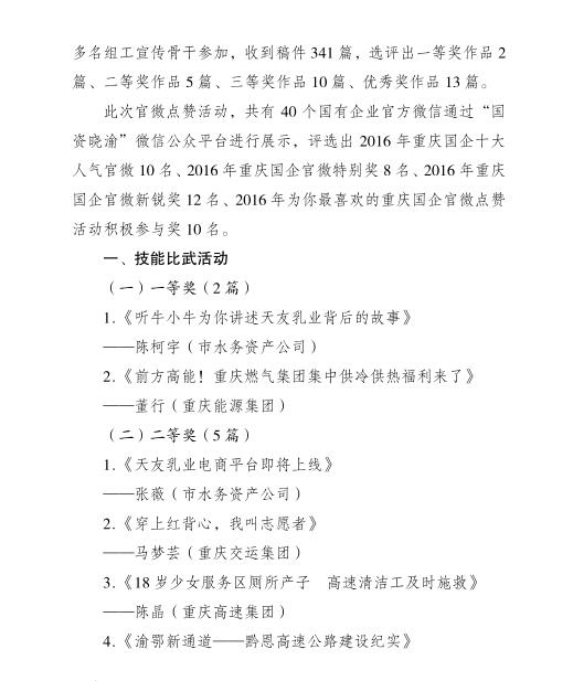重慶國資網(wǎng)絡新聞寫作比武活動獲獎情況通報